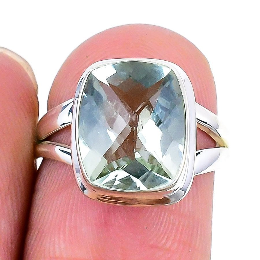Green Amethyst Gemstone Solid Sterling Silver Statement Birthday Wife Ring US 6