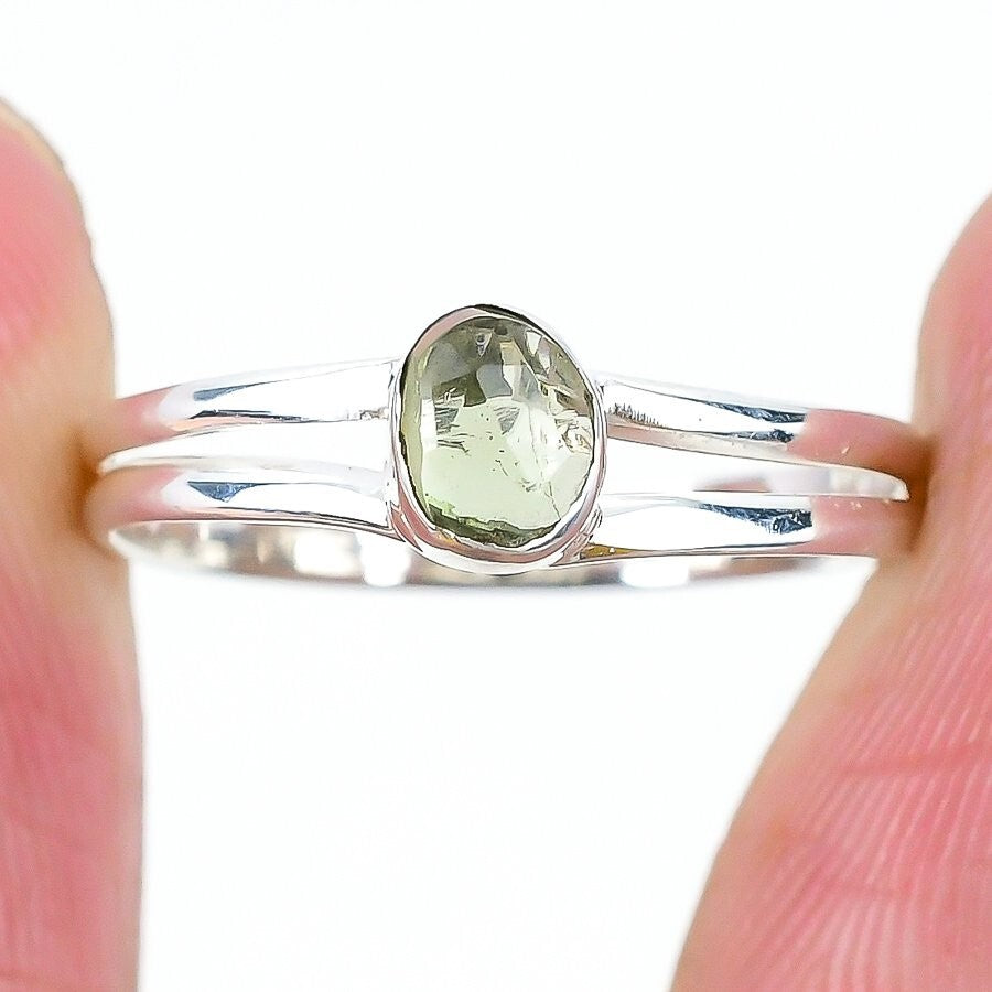 Green Amethyst Gemstone Statement Engagement Ring Jewelry Size 7.5 925 Silver