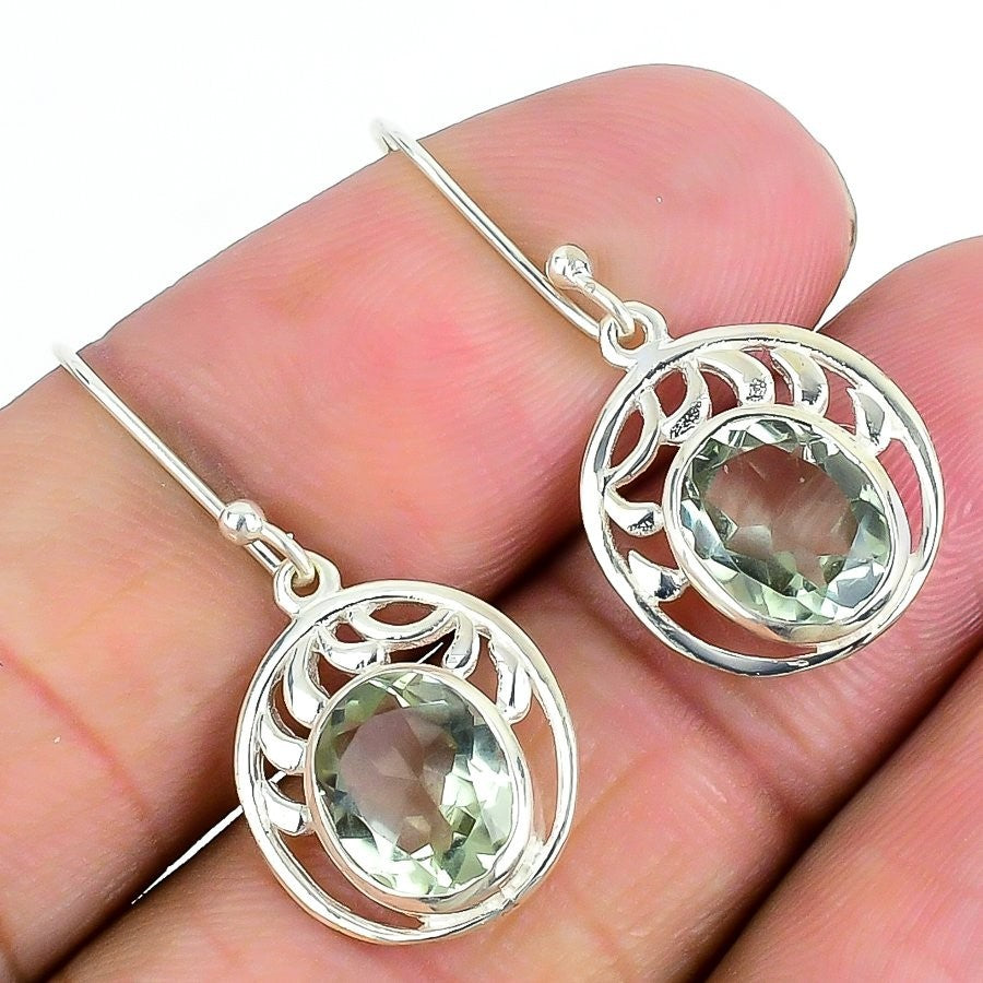 Green Amethyst Stone 925 Solid Silver Engagement Dangling Sisters Gift Earrings
