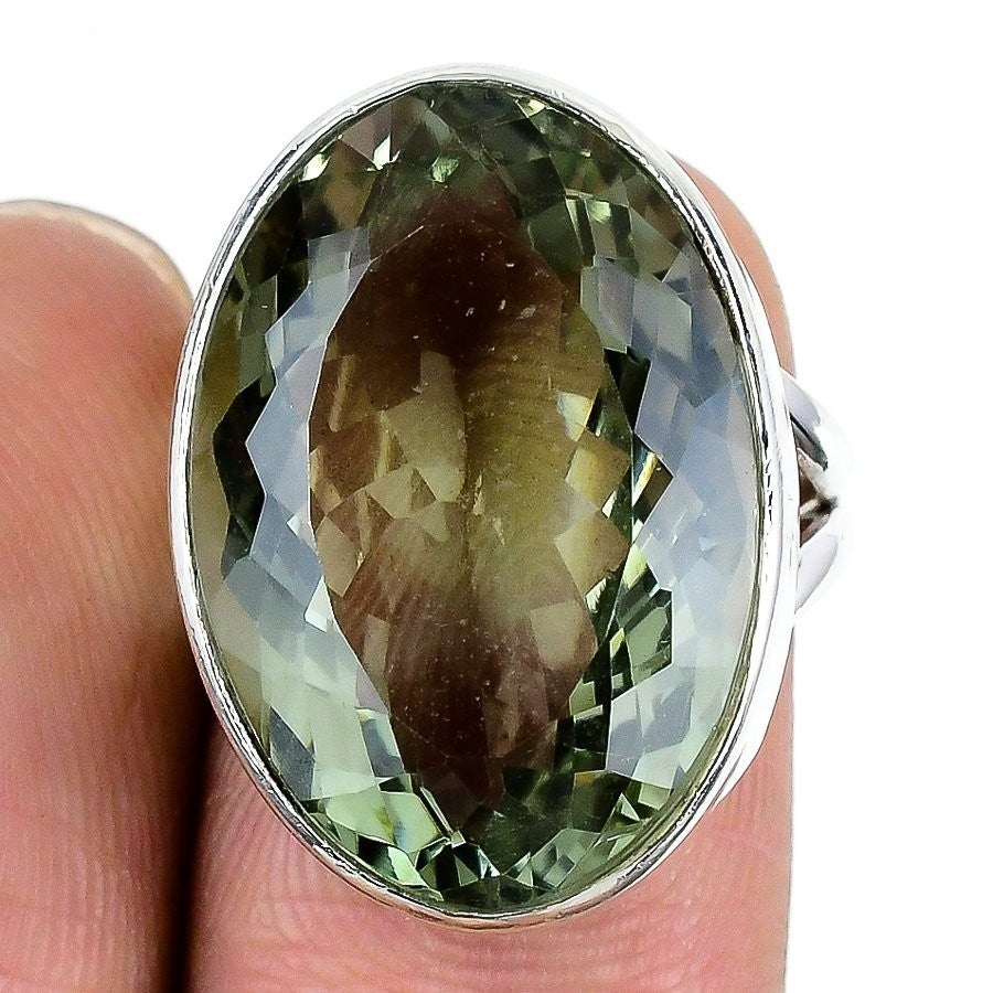 Green Amethyst Stone 925 Sterling Silver Engagement Statement Birthday Ring US 6