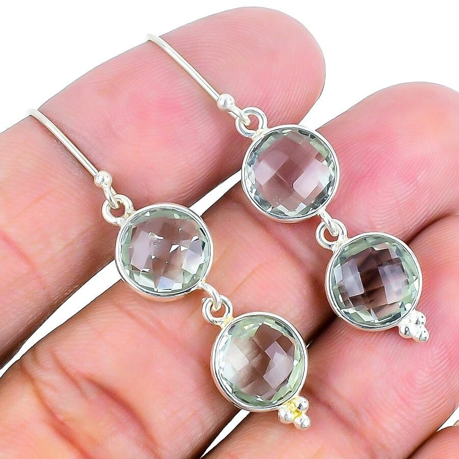 Green Amethyst Stone Birthday Drop Ethnic Anniversary Earrings 925 Solid Silver
