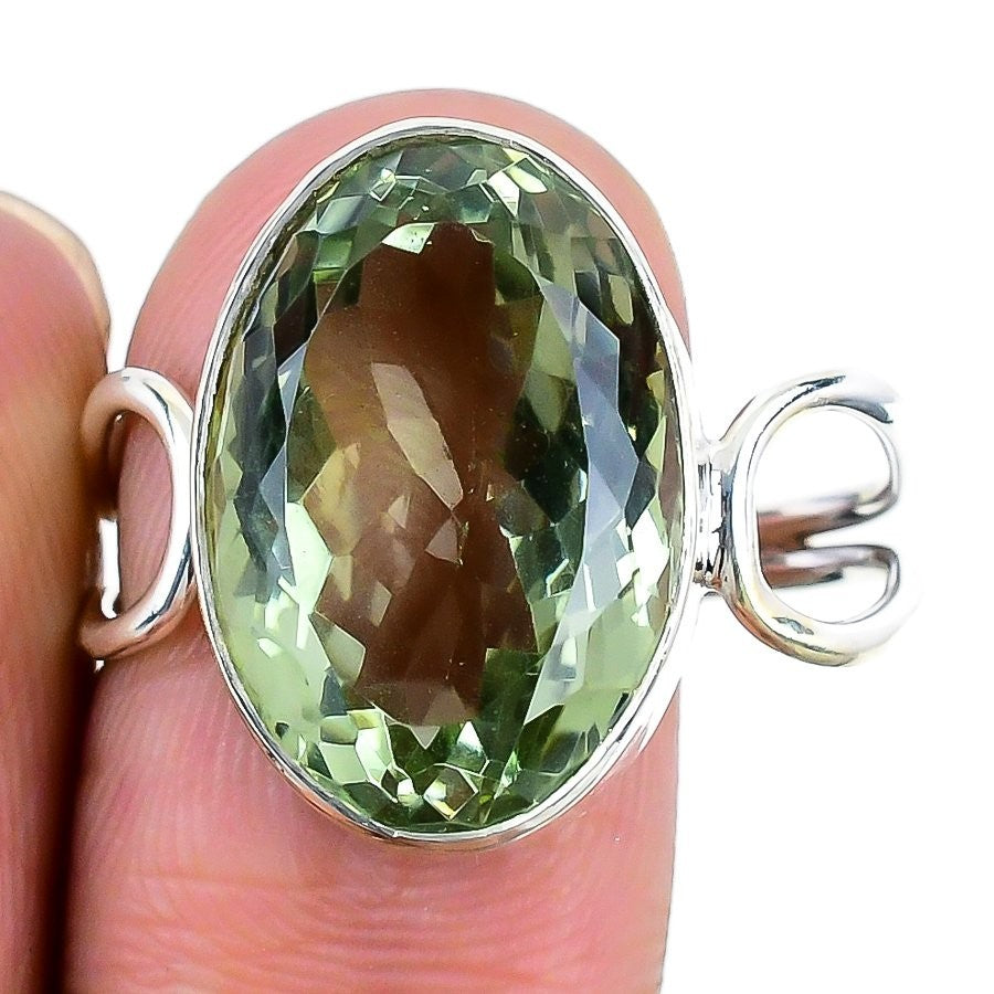 Green Amethyst Stone Solid Silver Channel Set Statement Wife Ring Jewelry Size 8