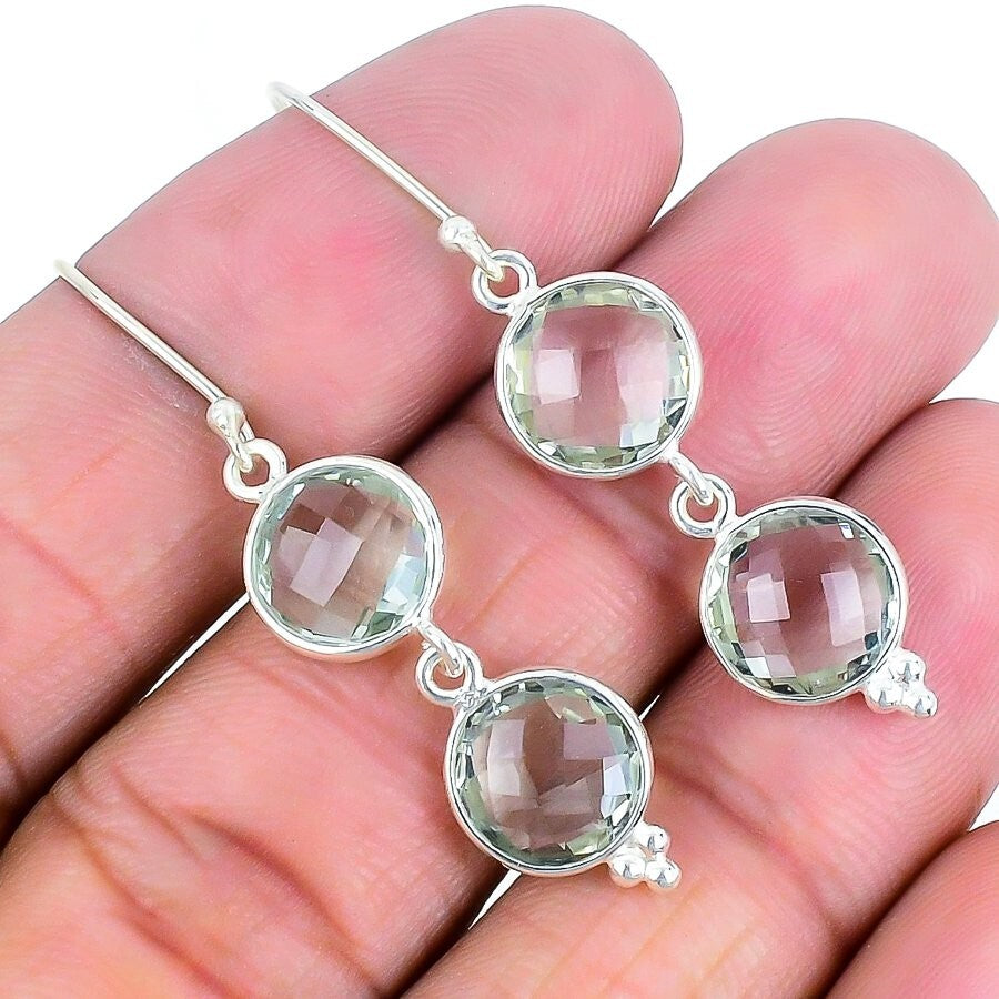 Green Amethyst Stone Solid Silver Drop Dangle Birthday Daughter Earrings Jewelry
