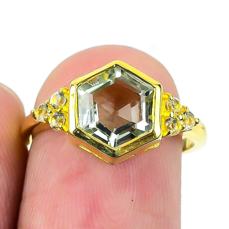 Green Amethyst Stone Solid Sterling Silver Statement Wedding Ring Jewelry Size 7