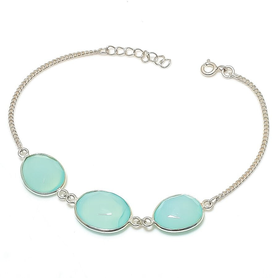 Green Chalcedony Gemstone 925 Sterling Silver Mother New Chain Bracelet Jewelry