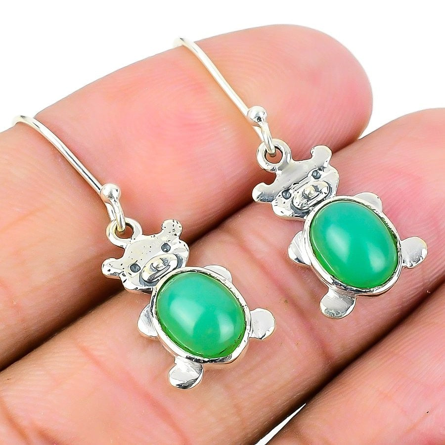 Green Chalcedony Gemstone Solid Silver Engagement Hook Drop Wife Unique Earrings