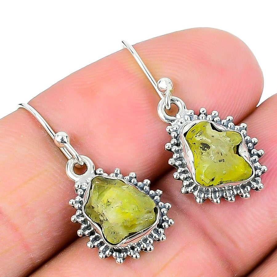 Green Kyanite Stone 925 Silver Hook Dangle Throat Chakra Wife Earrings Jewelry
