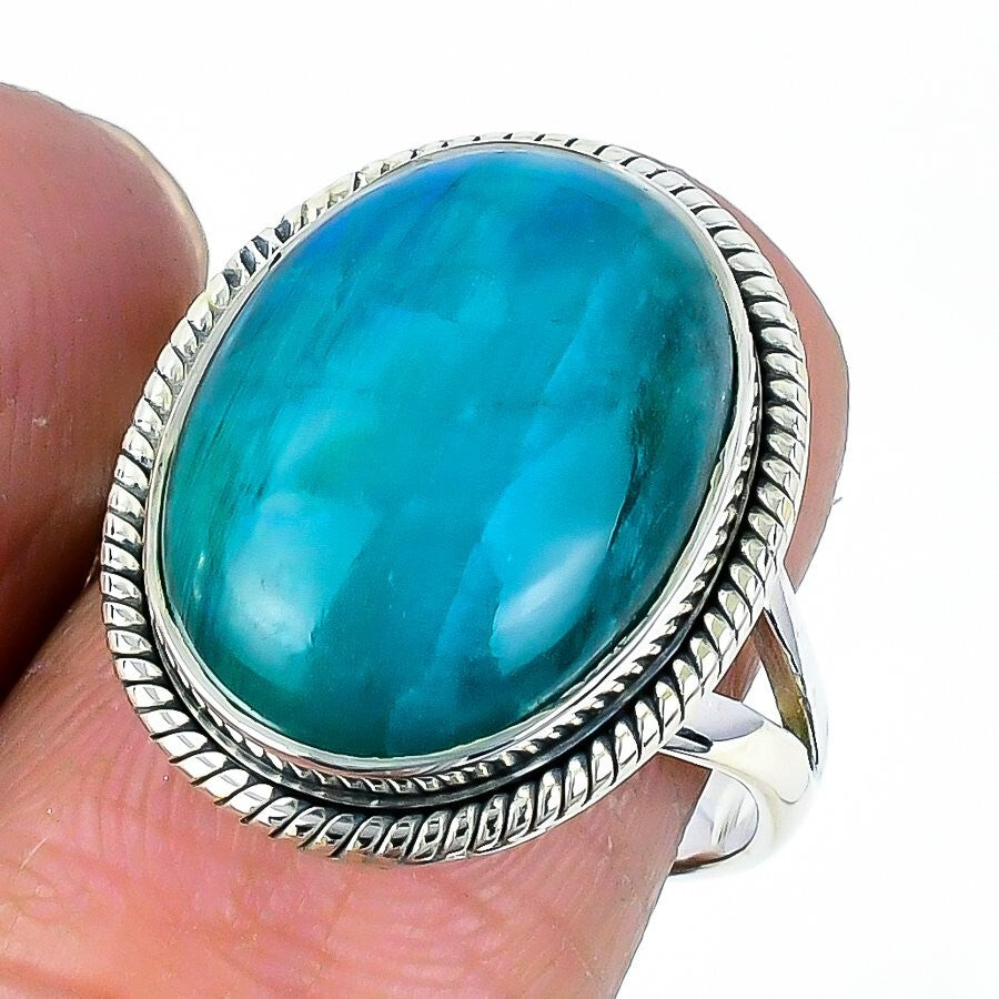 Green Moonstone Gemstone Statement Birthday Sister Ring 925 Sterling Silver US 8