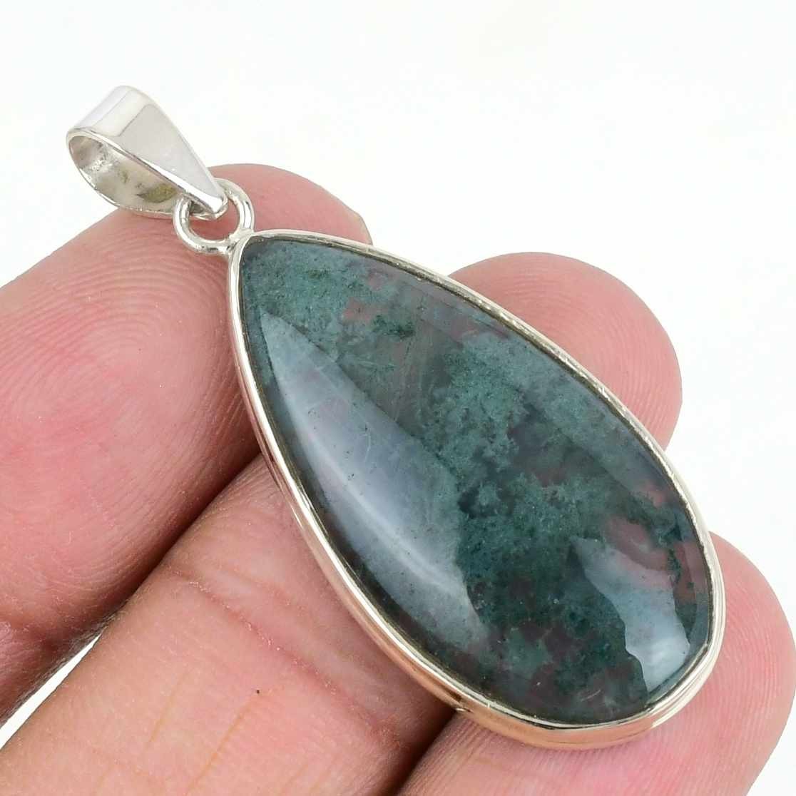 Green Moss agate Stone 925 Silver Best Daughters Gift Birthday Wedding Pendant