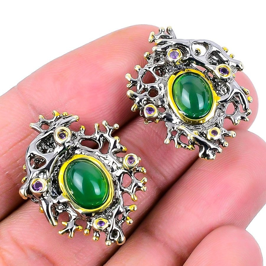 Elegant Green Onyx Gemstone 925 Silver Artisan Sister in 925