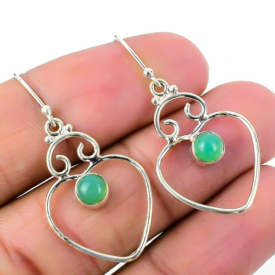 Green Onyx Gemstone 925 Solid Silver Wedding Drop Dangle Mother Earrings Jewelry