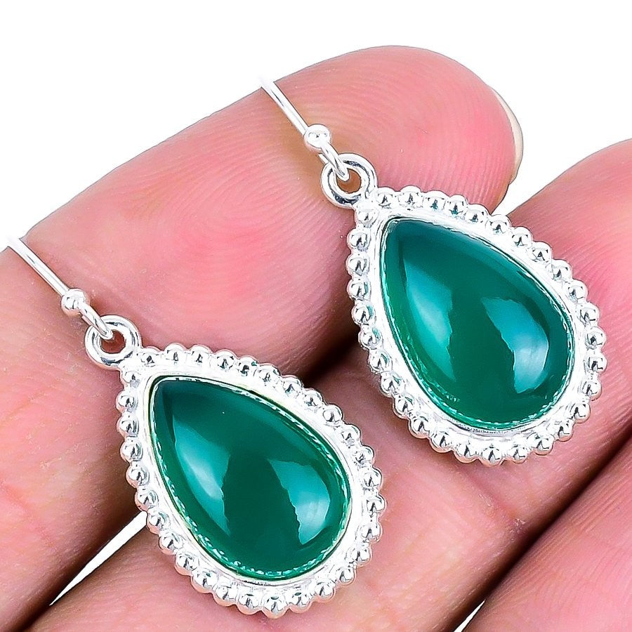 Elegant Green Onyx Gemstone Drop Dangle Hook Bezel in 925 St