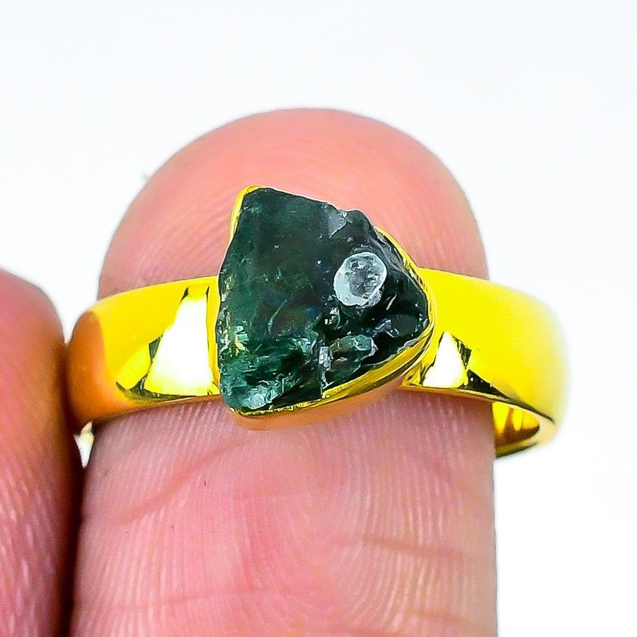 Elegant Green Tourmaline Stone 925 Sterling Silver Band in 9