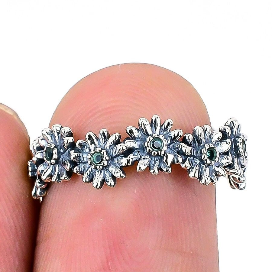 Green Tourmaline Stone Anniversary Boho Statement Ring 925 Solid Silver US 6.5