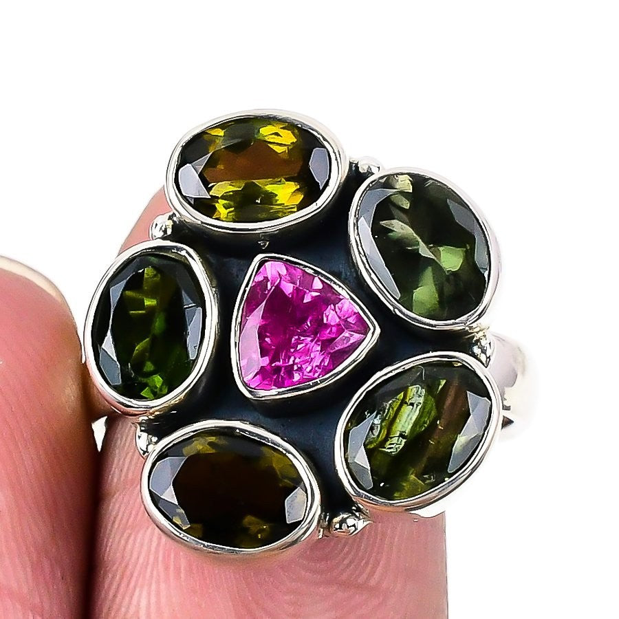 Green Tourmaline Stone Statement Daughter Gift Ring Jewelry 925 Silver US 8.5