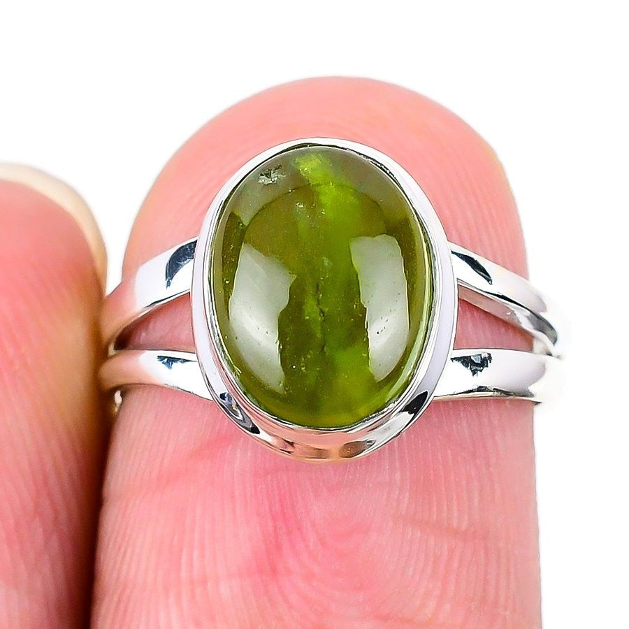 Green Tourmaline Stone Sterling Silver Statement Heart Chakra Unique Ring Size 6