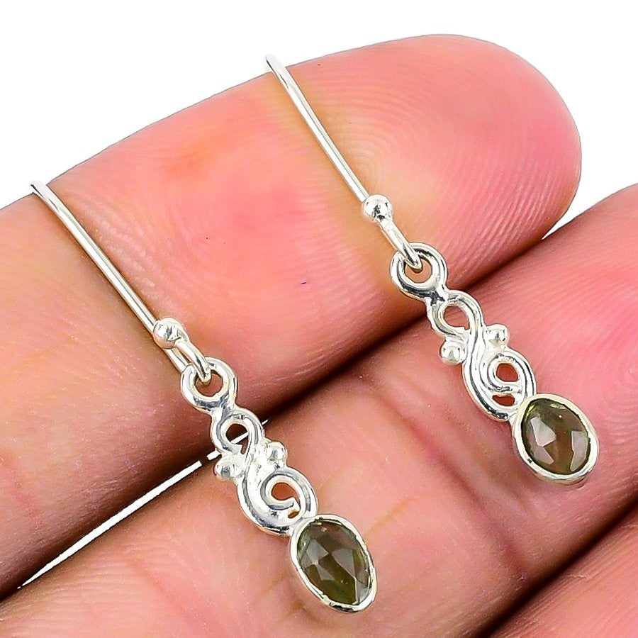 Heart Chakra Green Tourmaline Gemstone Solid Silver Anniversary Dangle Earrings
