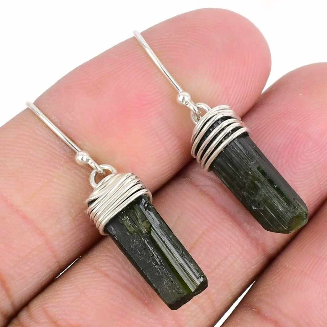 Heart Chakra Green Tourmaline Gemstone Sterling Silver Wife Dangle Drop Earrings