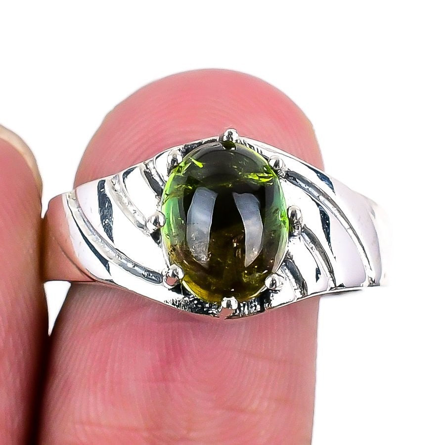 Heart Chakra Green Tourmaline Stone 925 Silver Engagement Sister Statement Ring