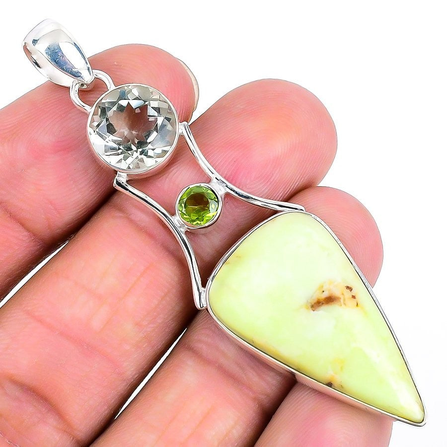 Heart Chakra Lemon Chrysoprase Stone 925 Silver Birthday Sister Pendant Jewelry