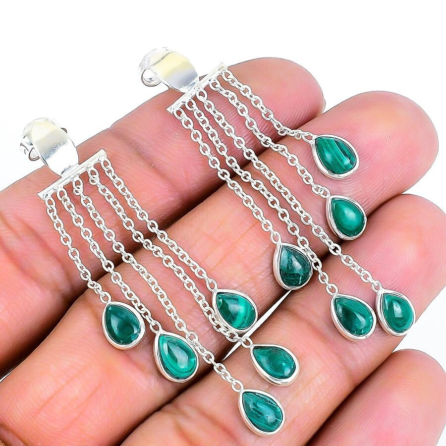 Heart Chakra Malachite Gemstone 925 Silver Stud Post Wedding Engagement Earrings