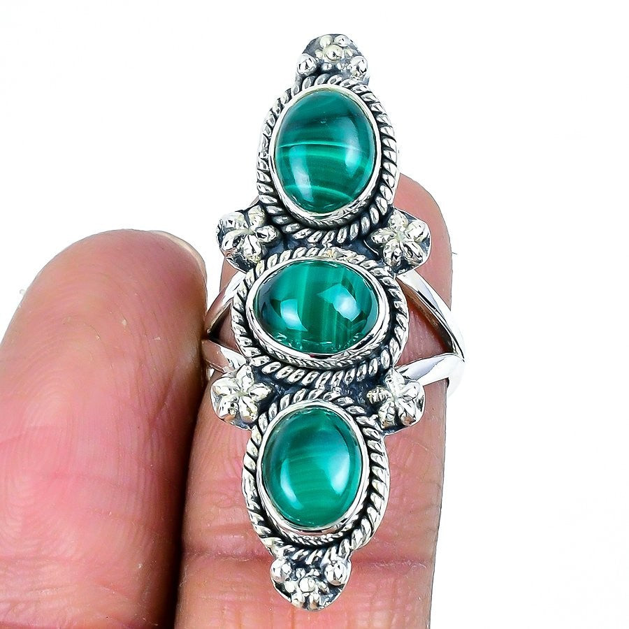 Heart Chakra Malachite Gemstone 925 Solid Silver Birthday Statement Wedding Ring