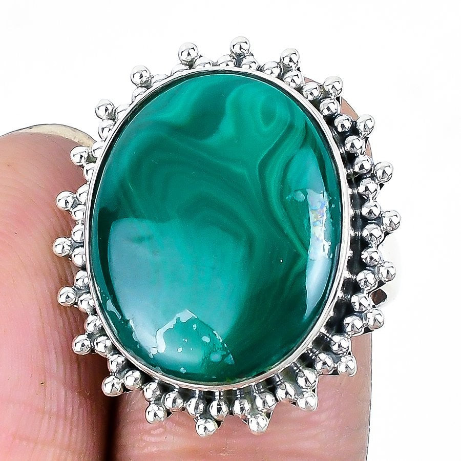 Heart Chakra Malachite Gemstone Statement Engagement Ring Sterling Silver US 7.5