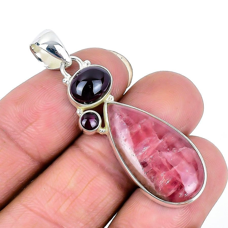 Heart Chakra Natural Rhodochrosite Solid Silver Mother Handmade Pendant Jewelry