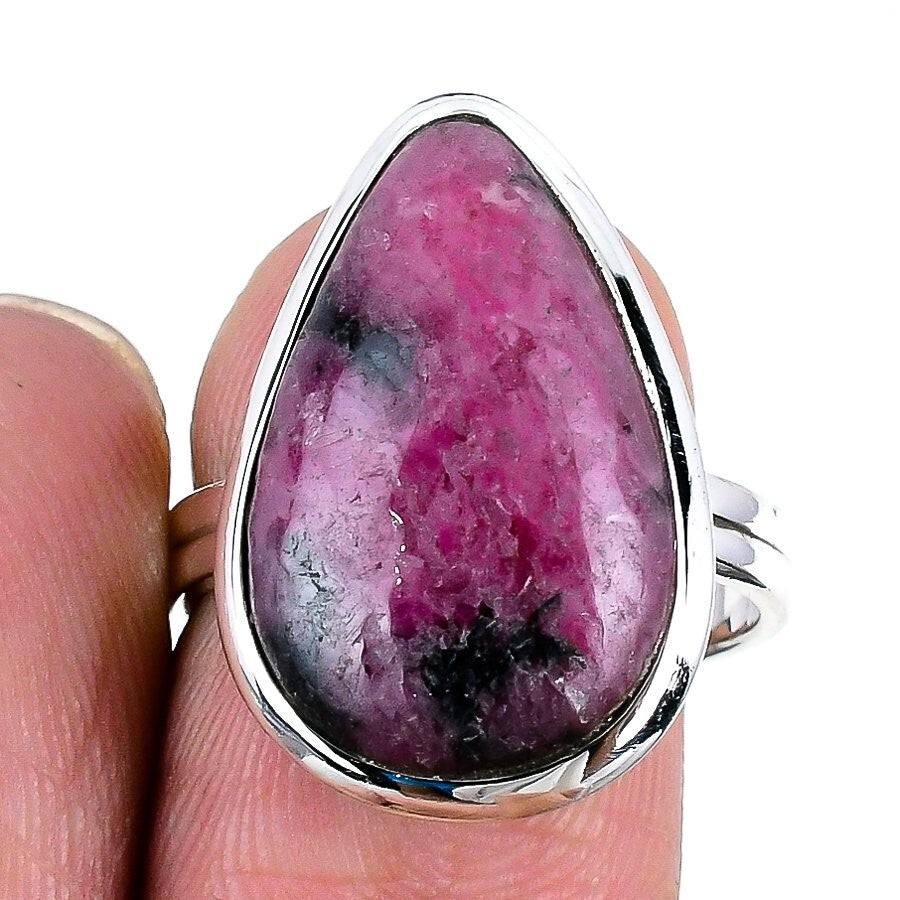 Heart Chakra Natural Rhodonite 925 Solid Silver Wife Statement Ring Jewelry US 8