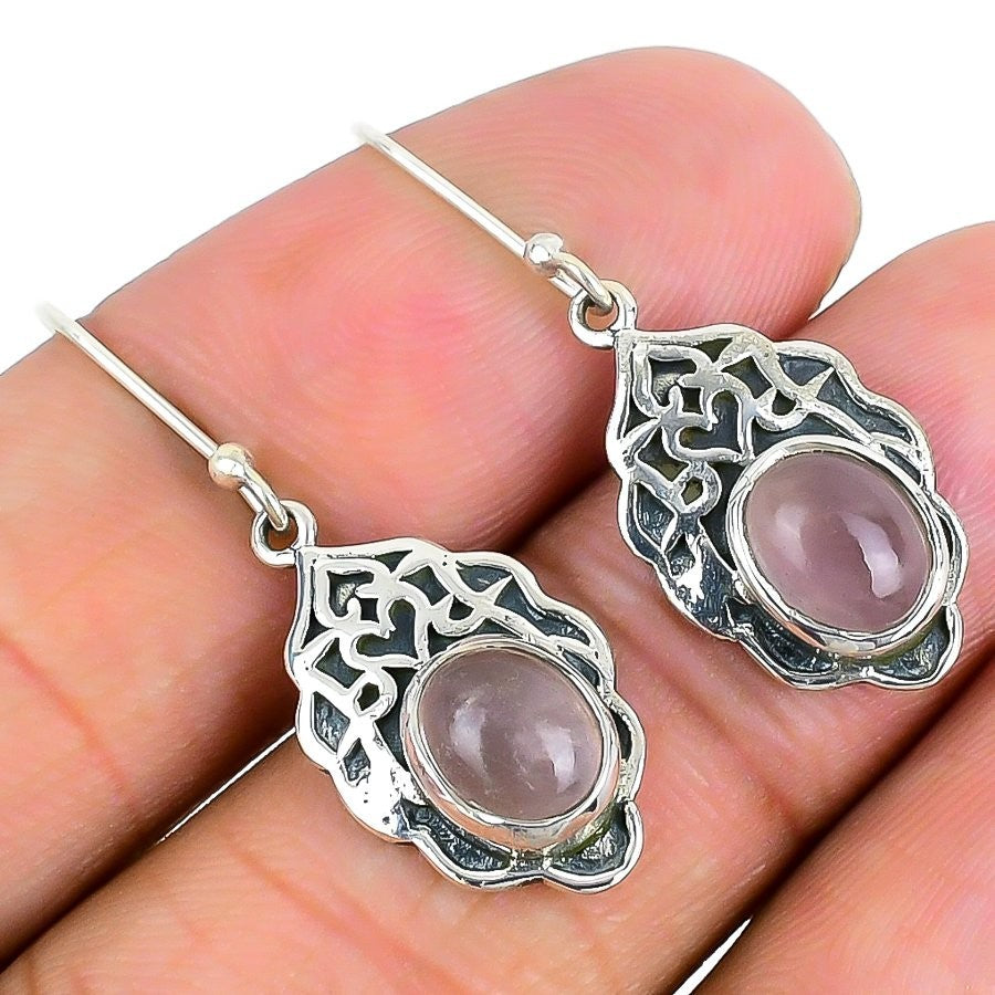 Heart Chakra Natural Rose Quartz 925 Sterling Silver Engagement Drop Earrings
