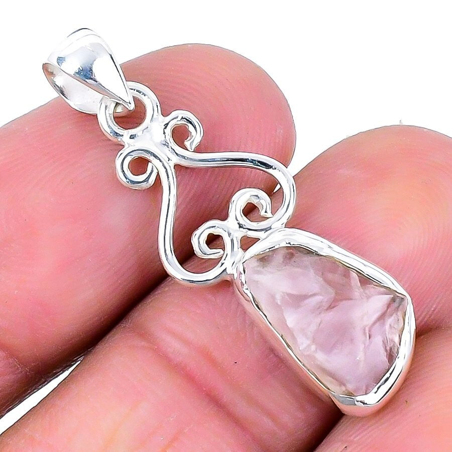 Heart Chakra Natural Rose Quartz Solid Sterling Silver Boho Trendy New Pendant