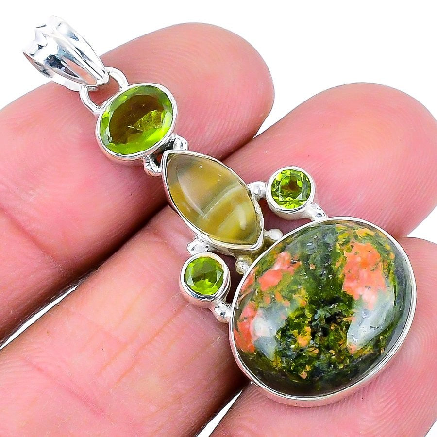 Heart Chakra Natural Unakite Daughters Day Sister New Pendant Jewelry 925 Silver