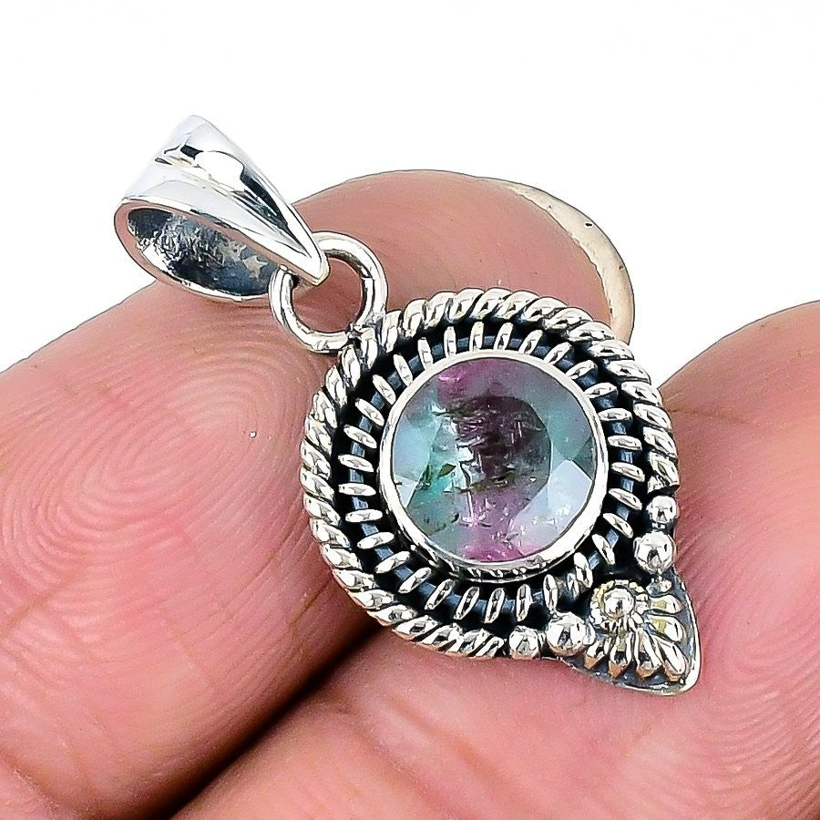 Heart Chakra Natural Watermelon Tourmaline 925 Solid Silver Mother New Pendant