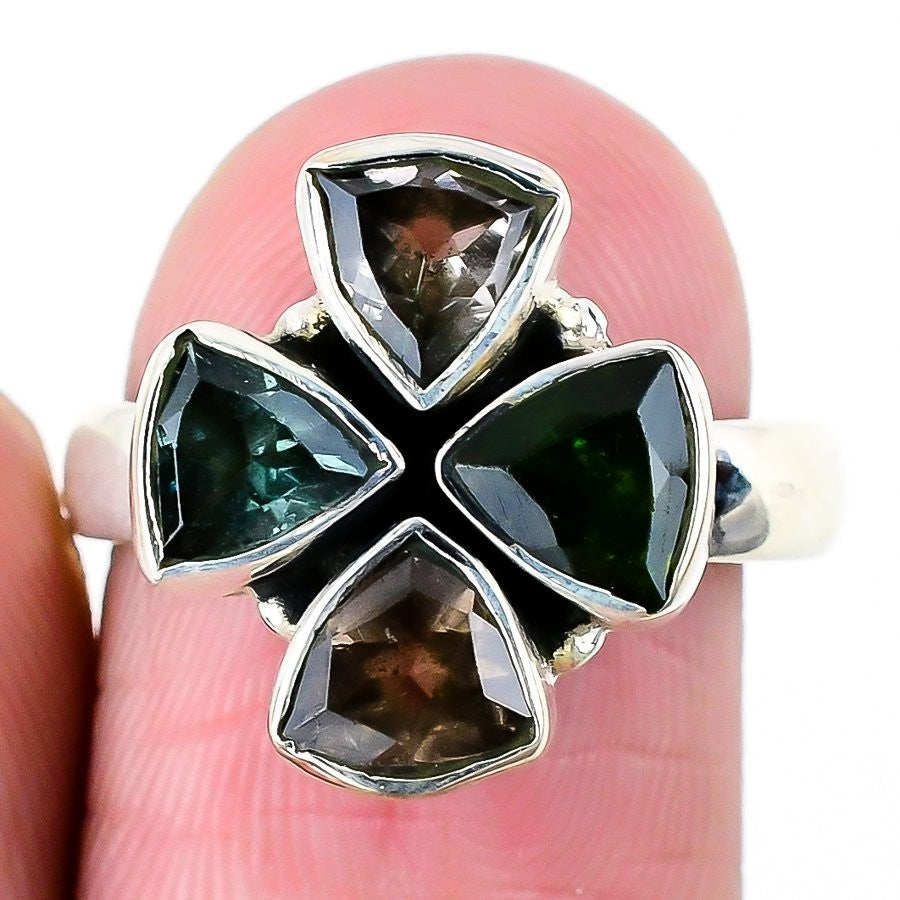 Heart Chakra Natural Watermelon Tourmaline Solid Silver Wife Cluster Ring Size 8