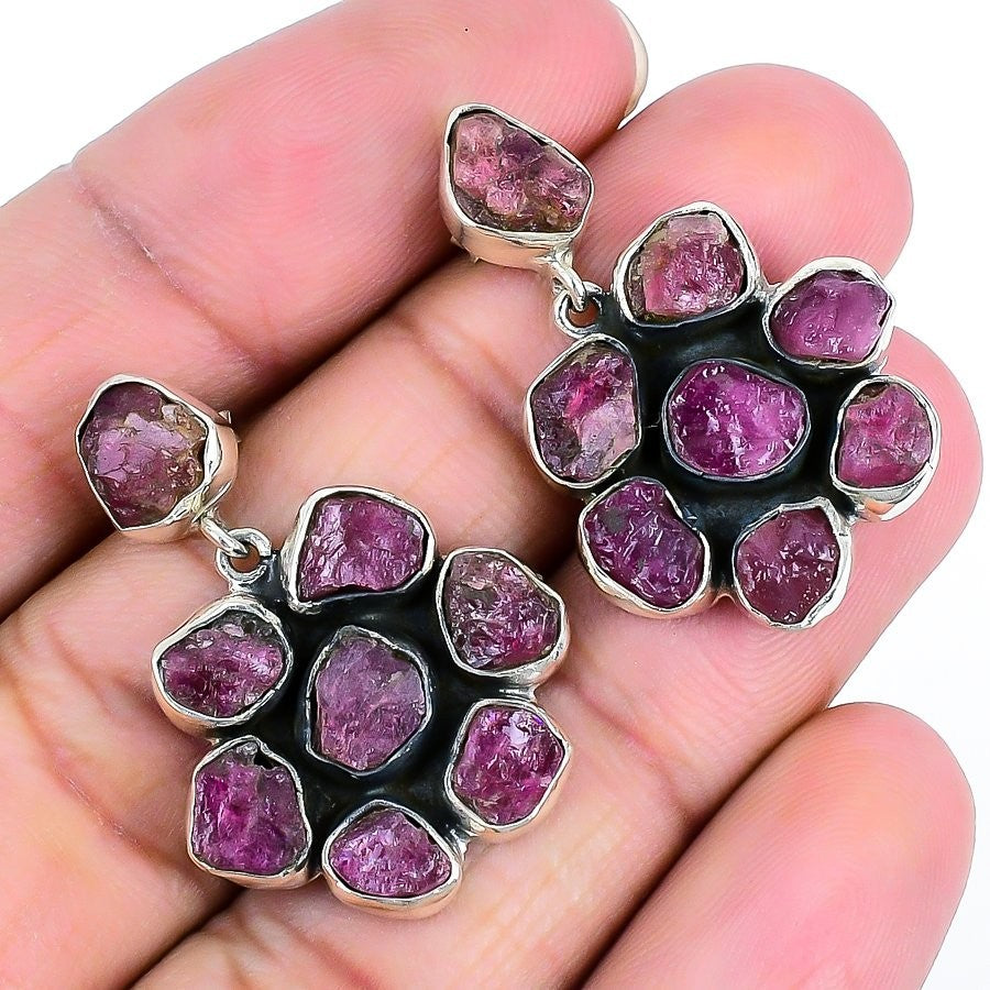 Heart Chakra Pink Tourmaline Stone Wedding Dangle Drop Hook Earrings 925 Silver