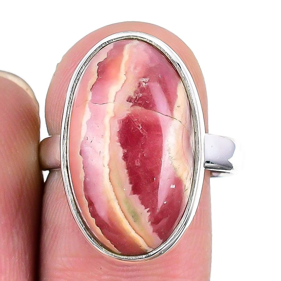 Heart Chakra Rhodochrosite Stone Solid Silver Wedding Wife Statement Ring Size 9