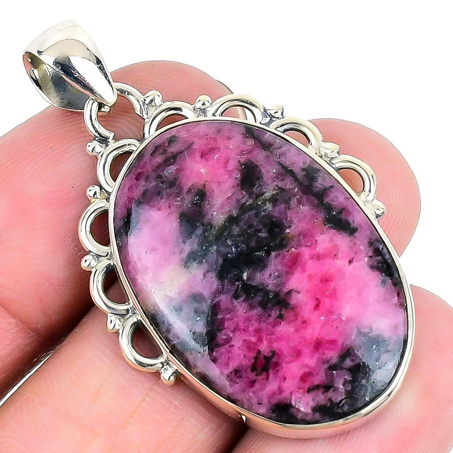 Heart Chakra Rhodonite Gemstone 925 Sterling Silver Elegant Wife Pendant Jewelry