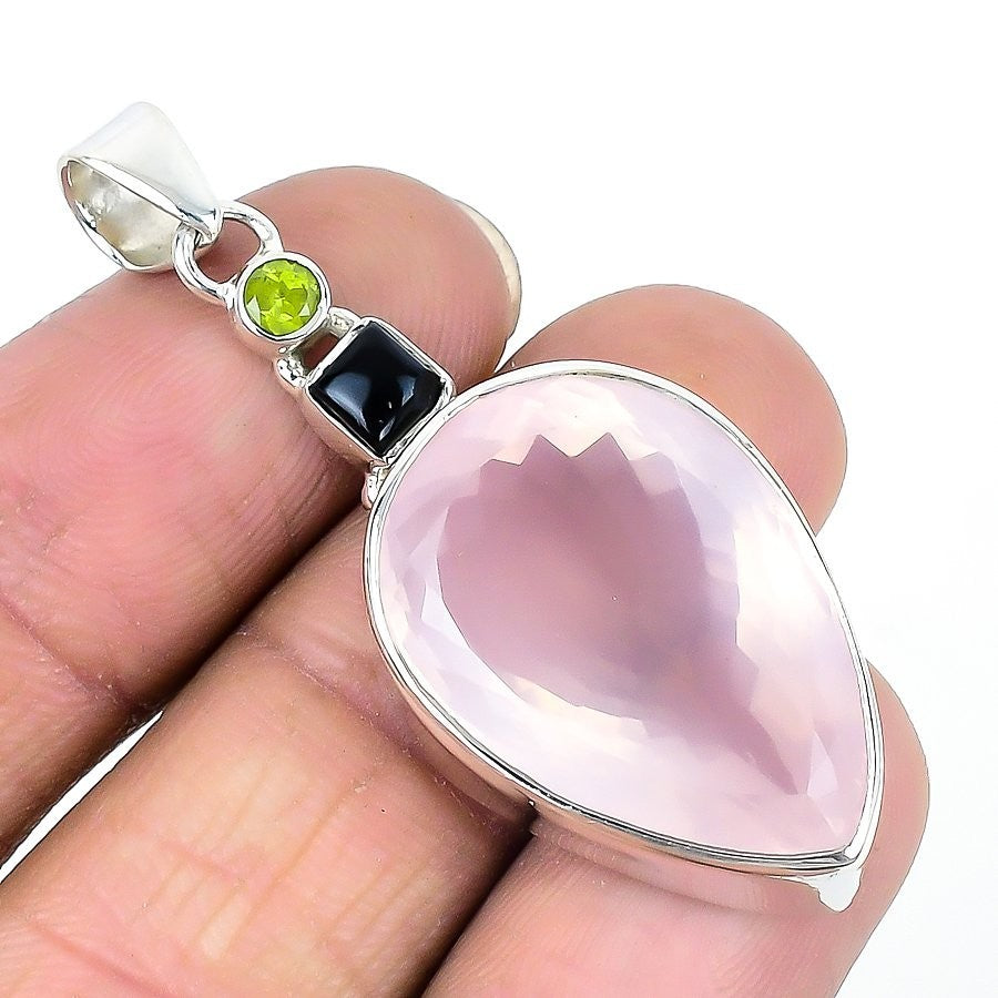 Heart Chakra Rose Quartz Faceted Gemstone Daughter Gift Pendant Sterling Silver