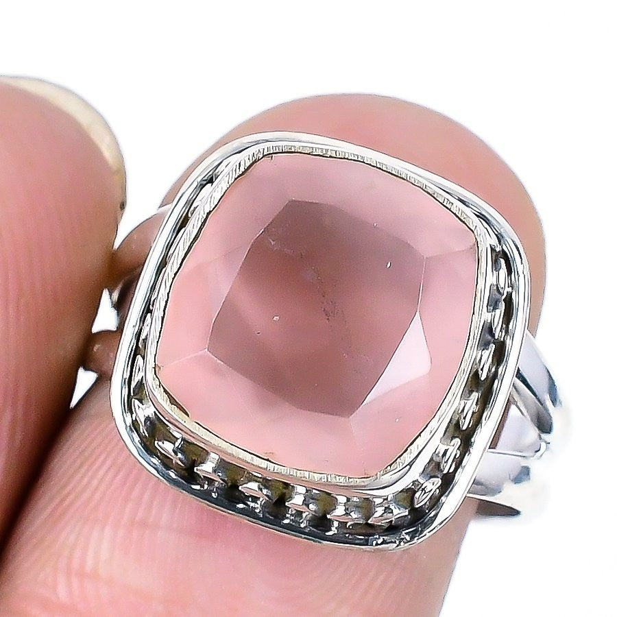 Heart Chakra Rose Quartz Faceted Stone 925 Silver Statement Ring Jewelry US 8