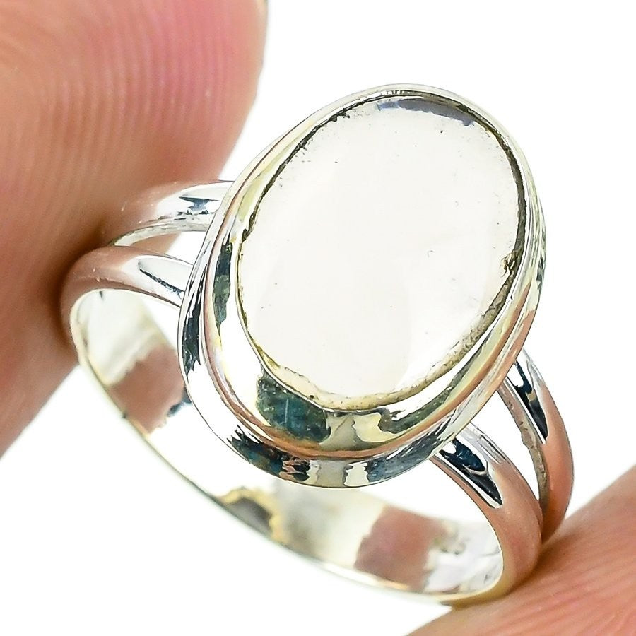 Heart Chakra Rose Quartz Gemstone 925 Solid Silver Wife Boho Cluster Ring Size 8