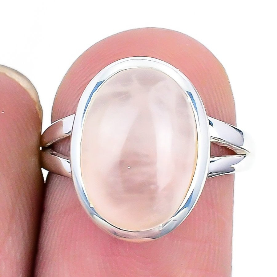 Heart Chakra Rose Quartz Gemstone Sterling Silver Statement Ring Jewelry US 6.5