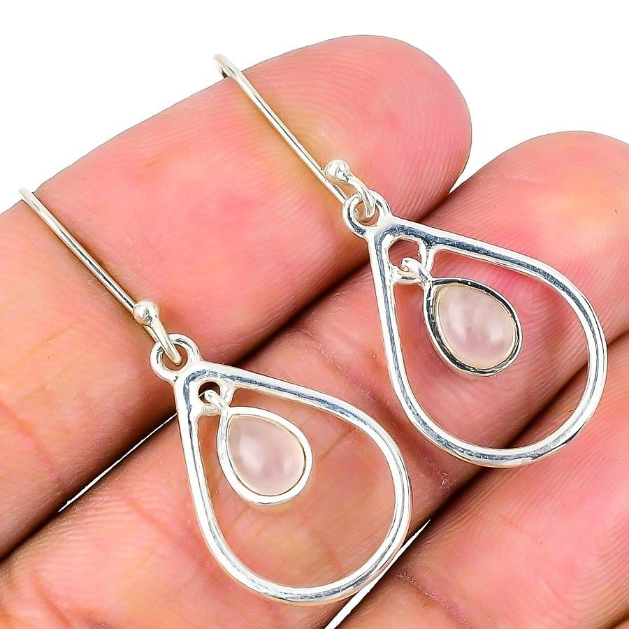 Heart Chakra Rose Quartz Stone Sterling Silver Wife Dangle Hook Earrings Jewelry
