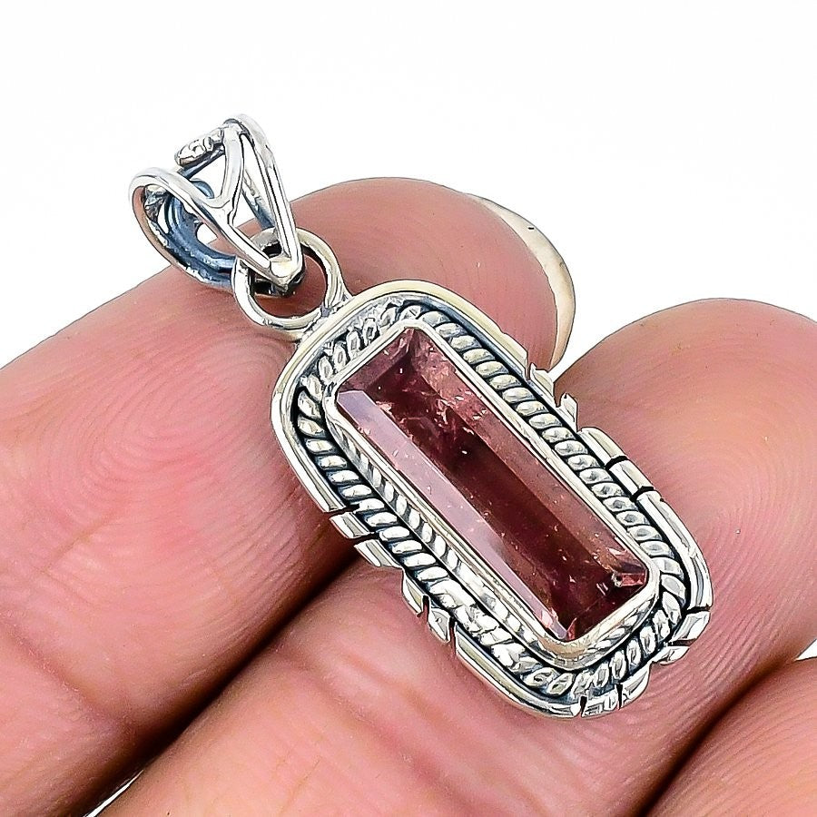 Heart Chakra Watermelon Tourmaline Gemstone 925 Sterling Silver Mother Pendant