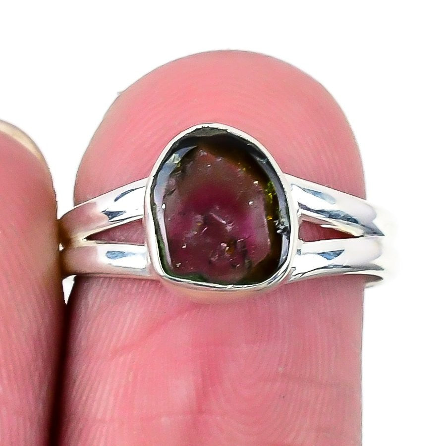 Heart Chakra Watermelon Tourmaline Stone 925 Sterling Silver Cluster Ring Size 7