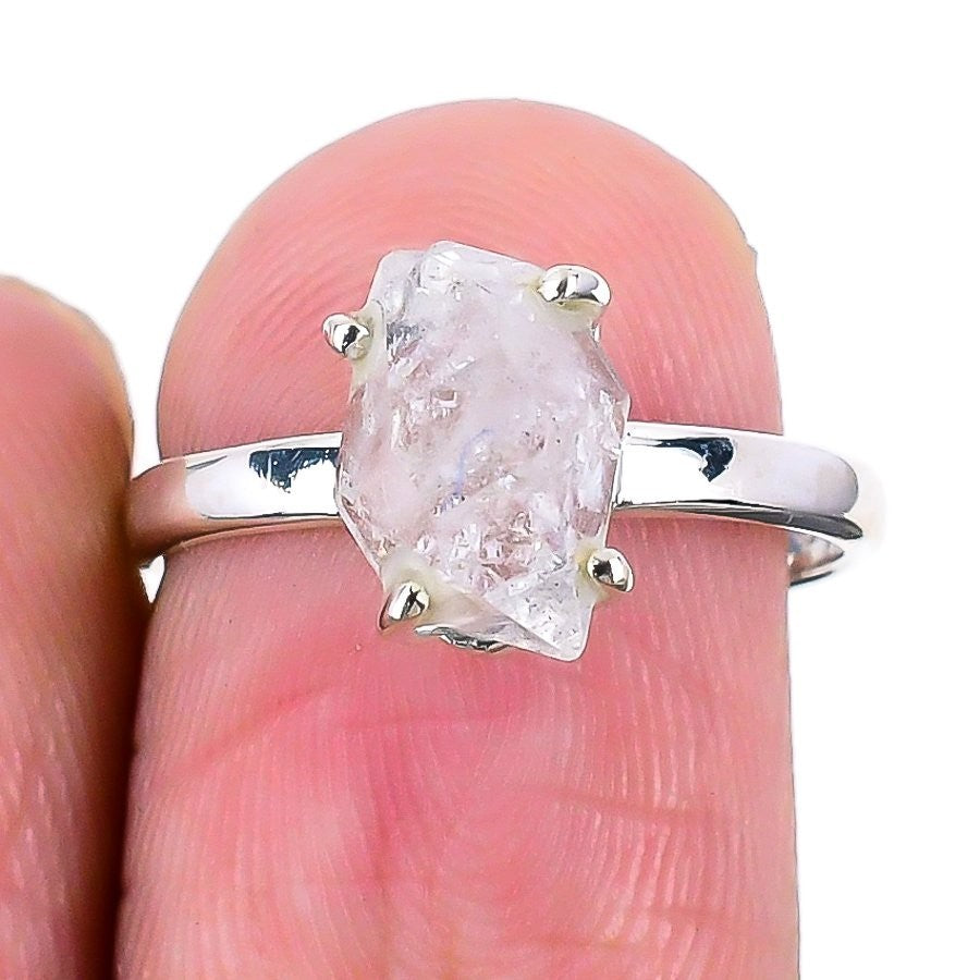 Herkimer Daimond Gemstone 925 Sterling Silver Cluster Ethnic Ring Jewelry Size 7