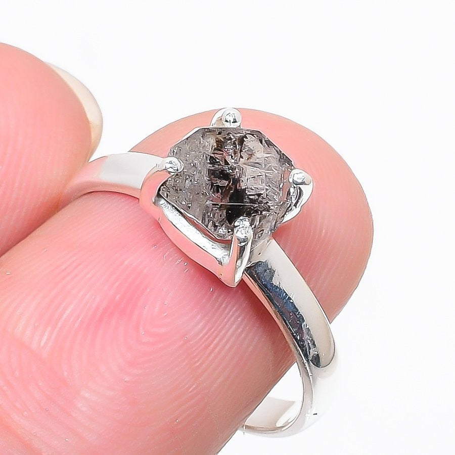 Herkimer Daimond Gemstone Solid Silver Trendy Boho Statement Mother Ring Size 9