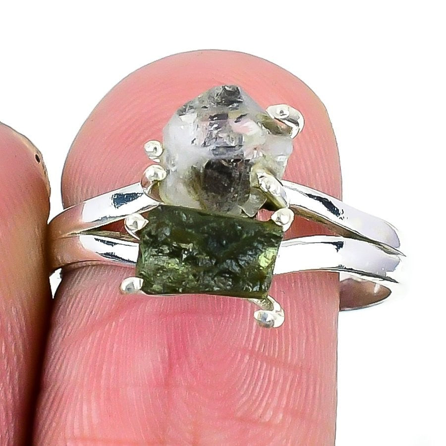 Herkimer Daimond Stone 925�Solid�Silver Cluster Artisan Birthday Ring Jewelry