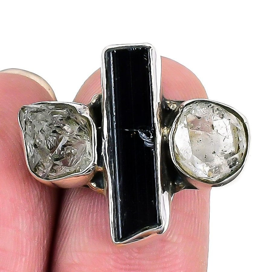 Herkimer Daimond Stone Solid Sterling Silver New Statement Ring Jewelry Size 6.5