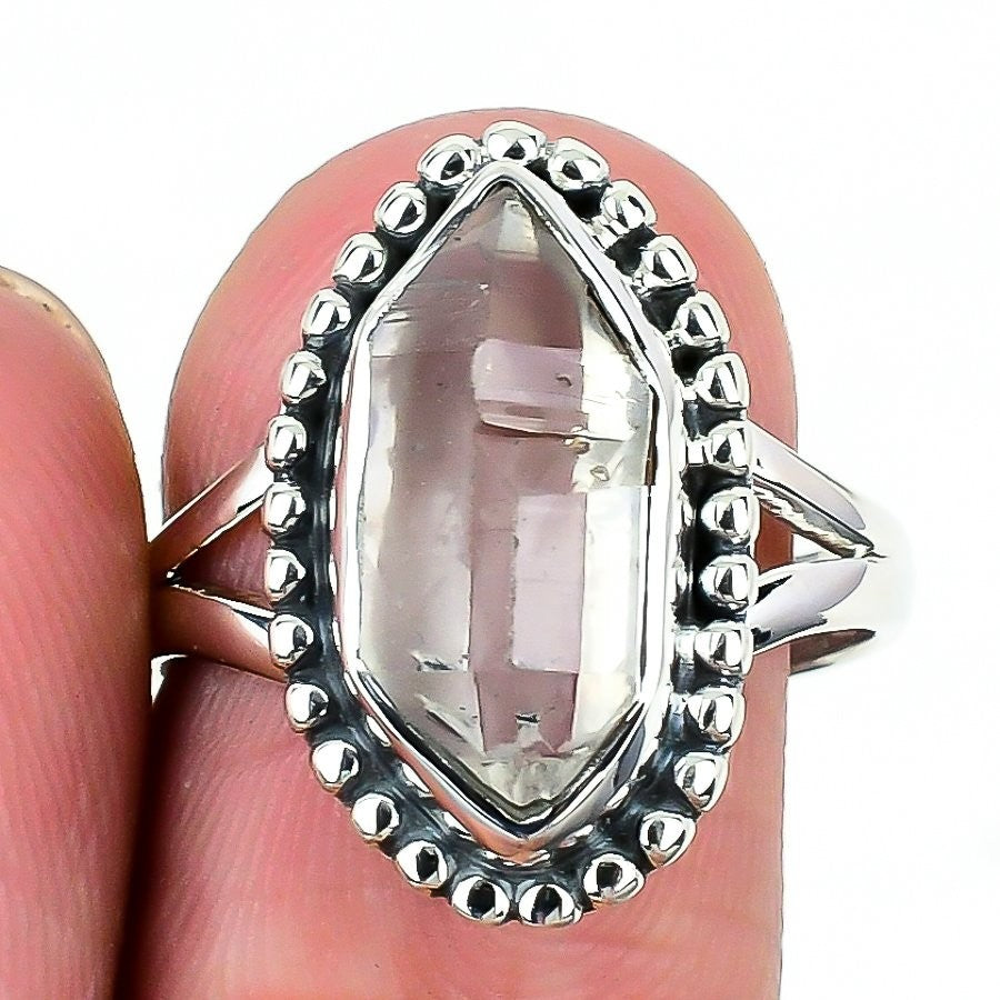 Herkimer Daimond Stone Statement Wedding Ring Jewelry Solid Sterling Silver US 9