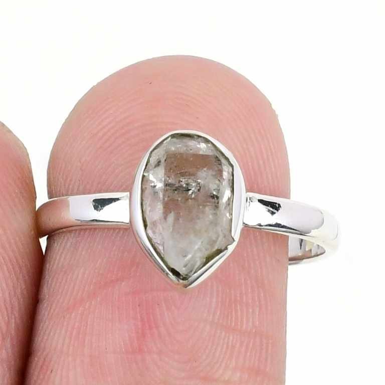 Herkimer Diamond Gemstone Cluster Daughter Gift Ring Size 8.5 Sterling Silver